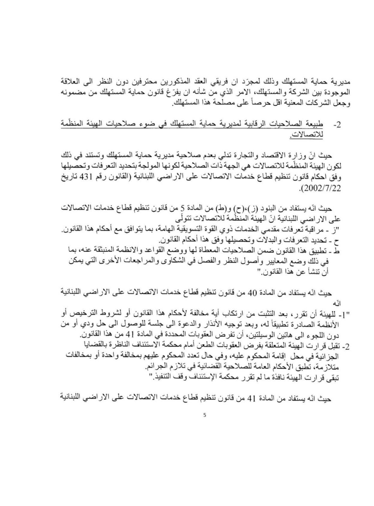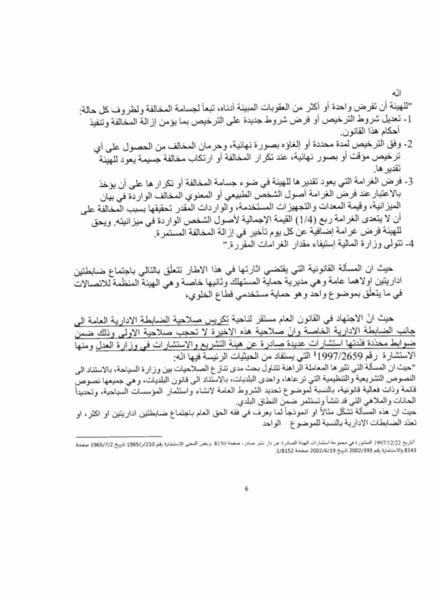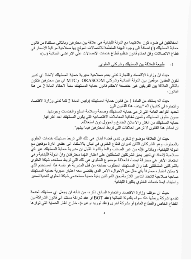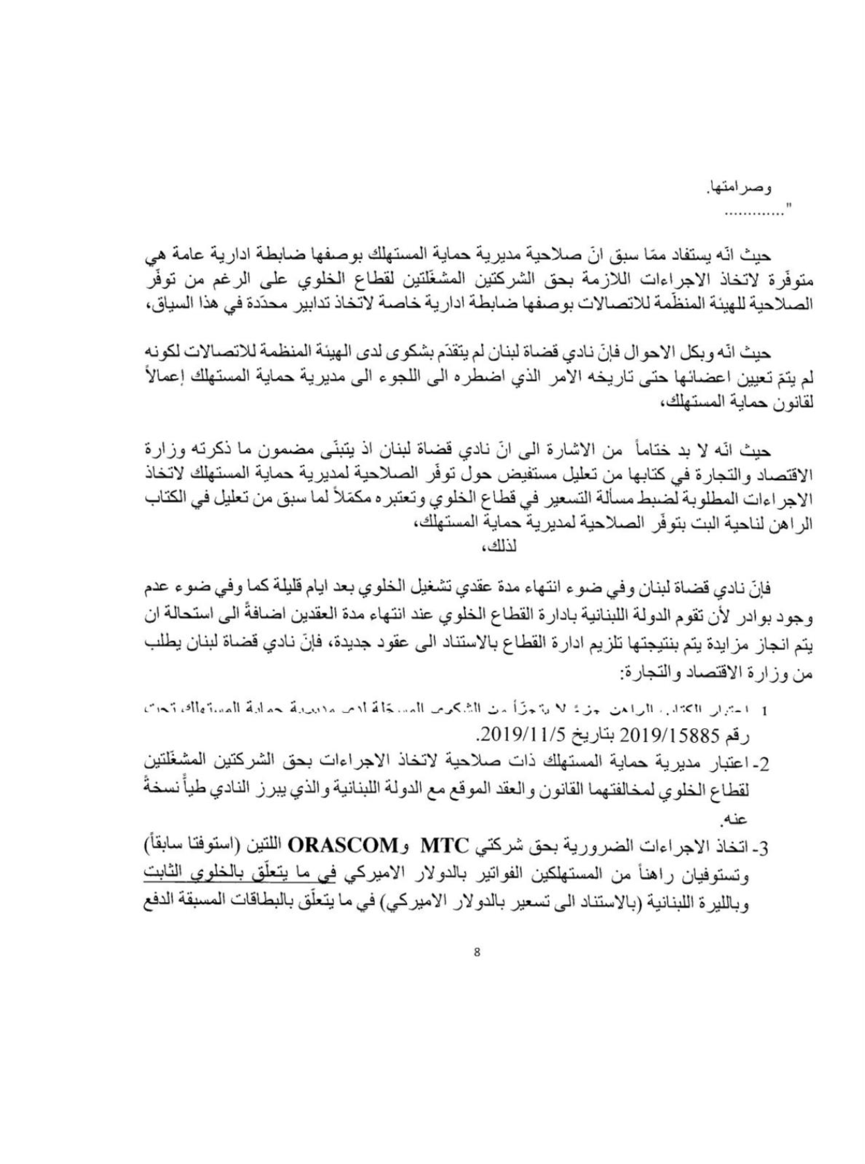 ويحسم مسألة صلاحية مديرية حماية المستهلك لمراقبة تسعير خدمات الخلوي