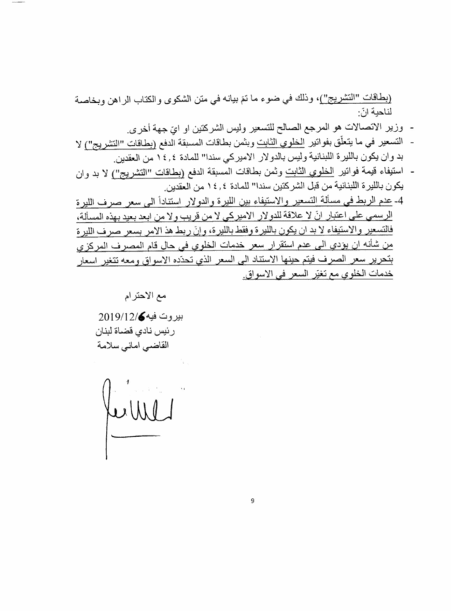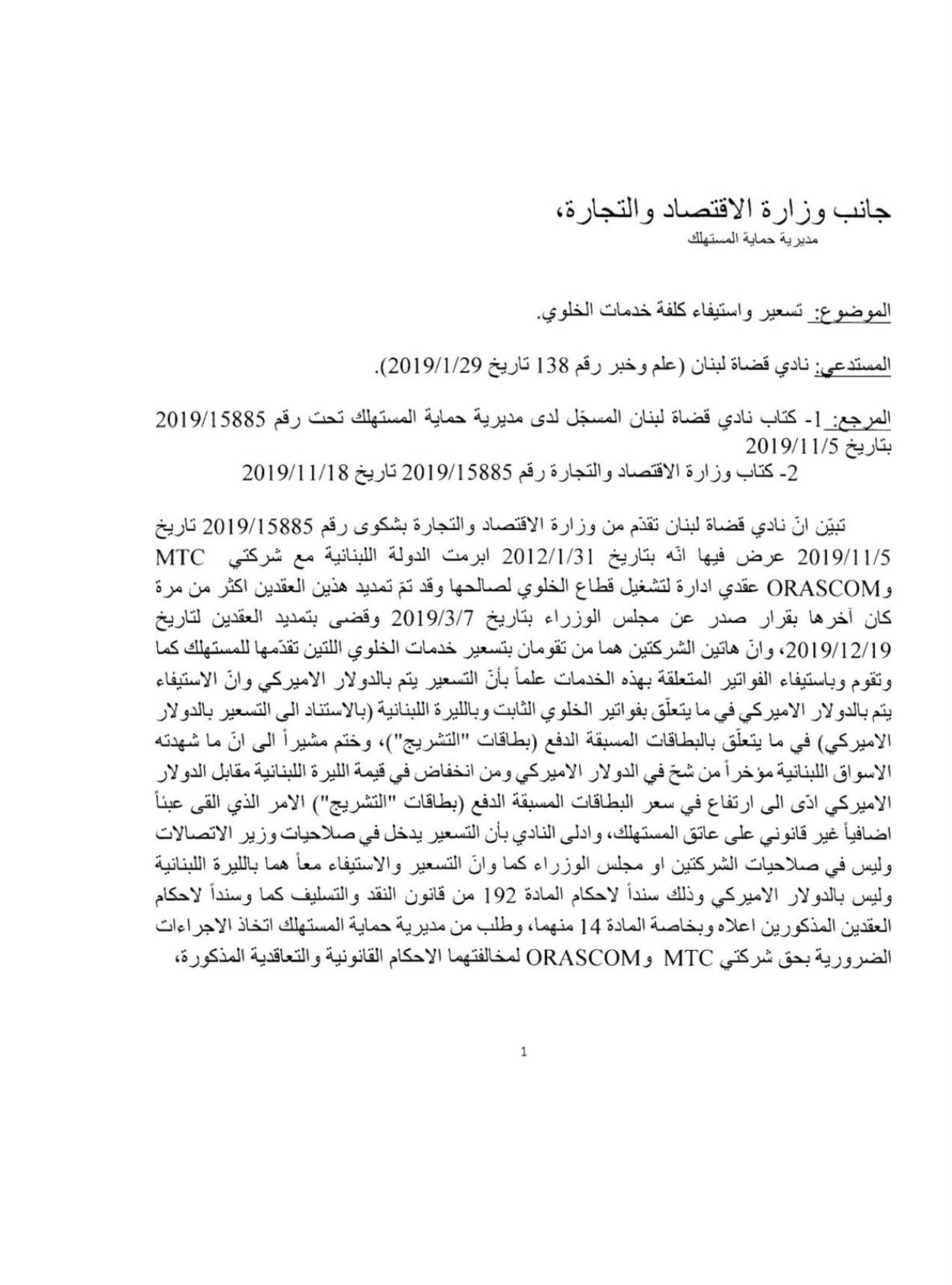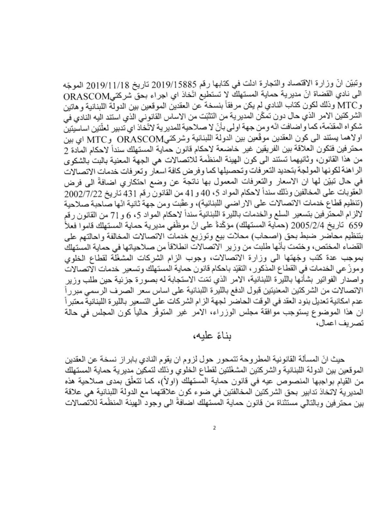 ويحسم مسألة صلاحية مديرية حماية المستهلك لمراقبة تسعير خدمات الخلوي