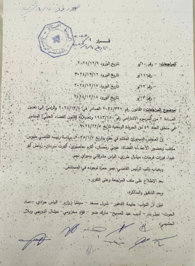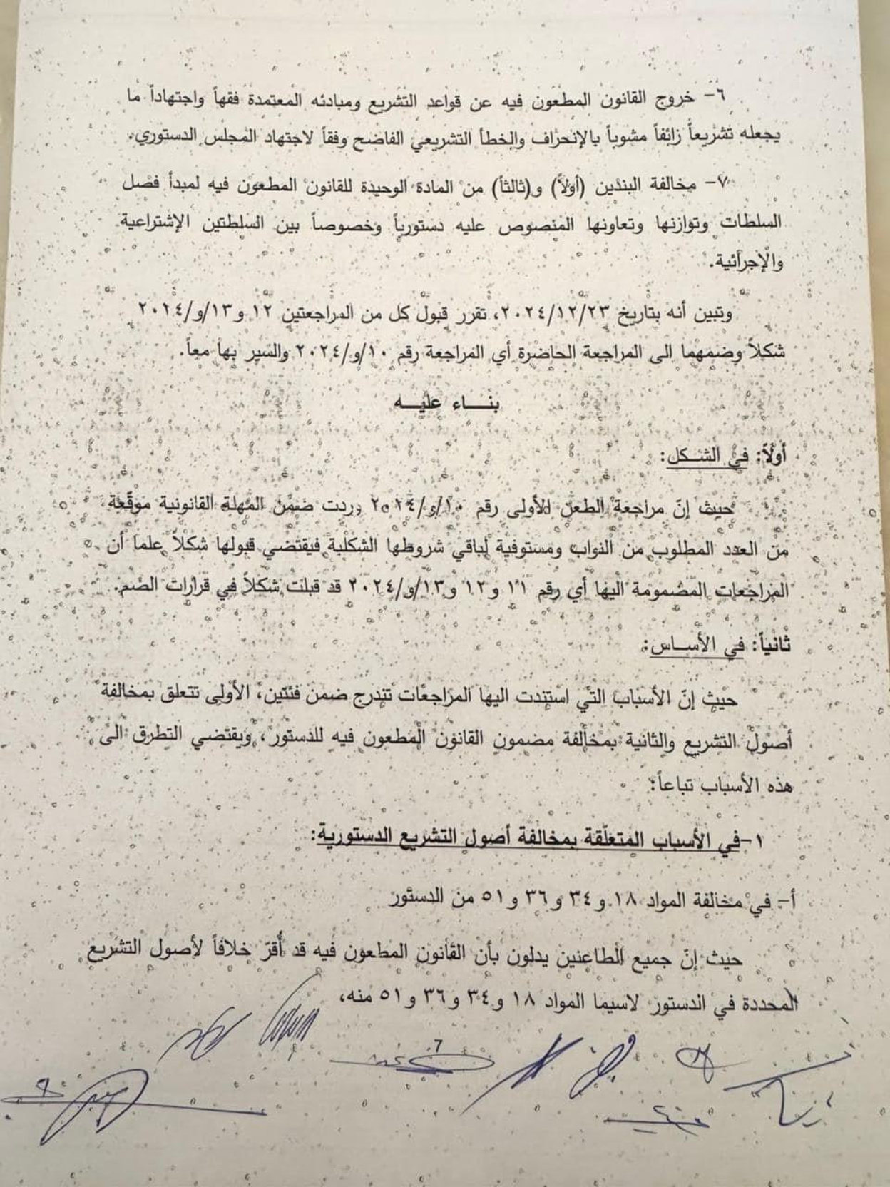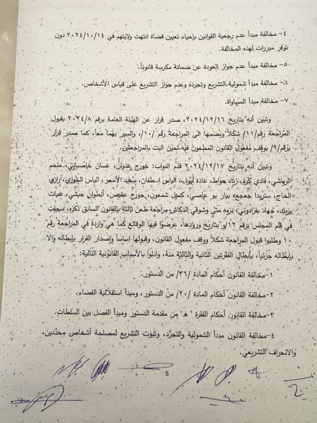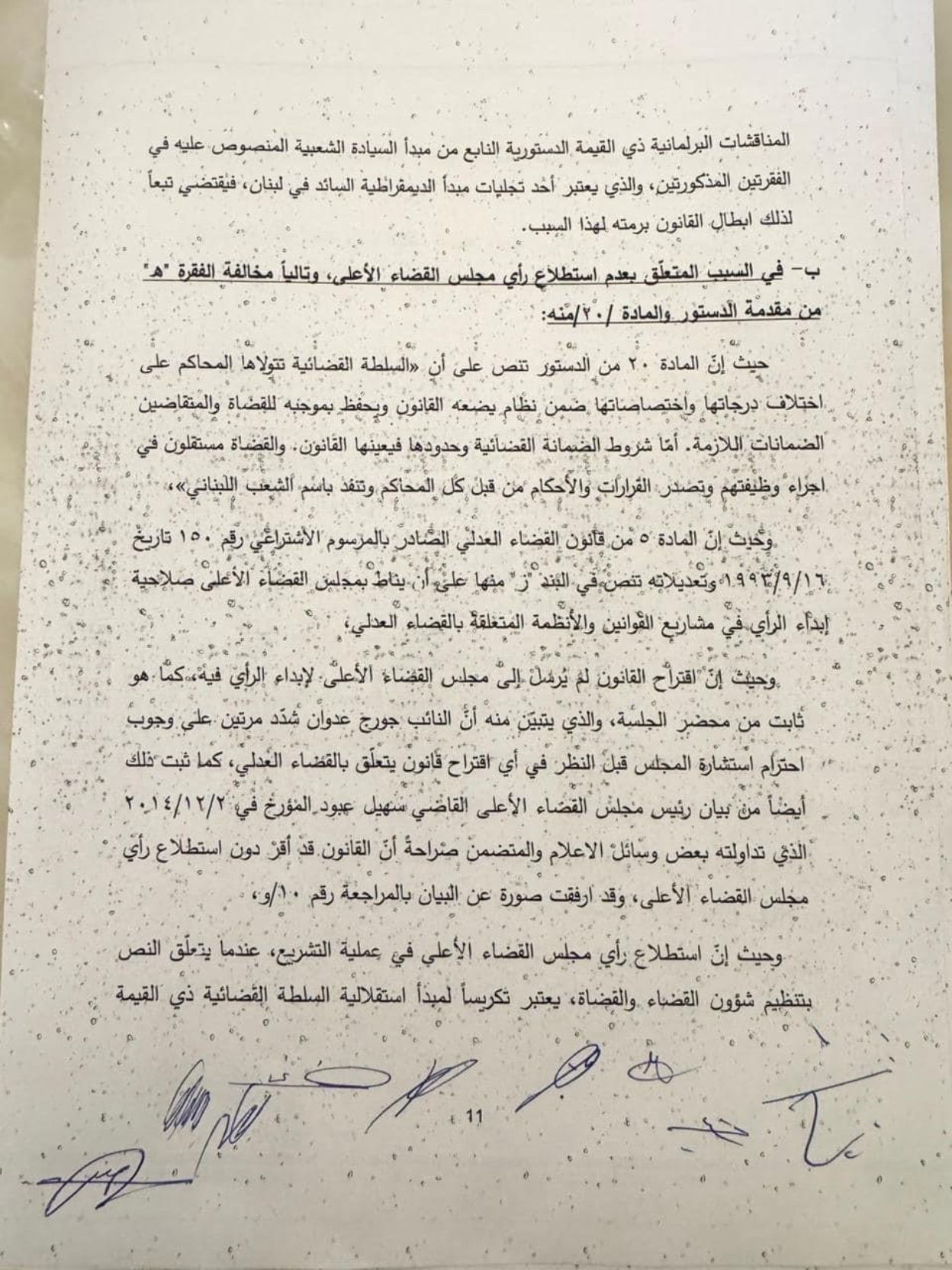 تجدون ادناه صور للقرار الذي صدر اليوم عن المجلس الدستوري بإجماع أعضائه وأبطل بموجبه القانون رقم ٣٢٧/ ٢٠٢٤ الذي عدّل المادة /٢/ من قانون القضاء العدلي