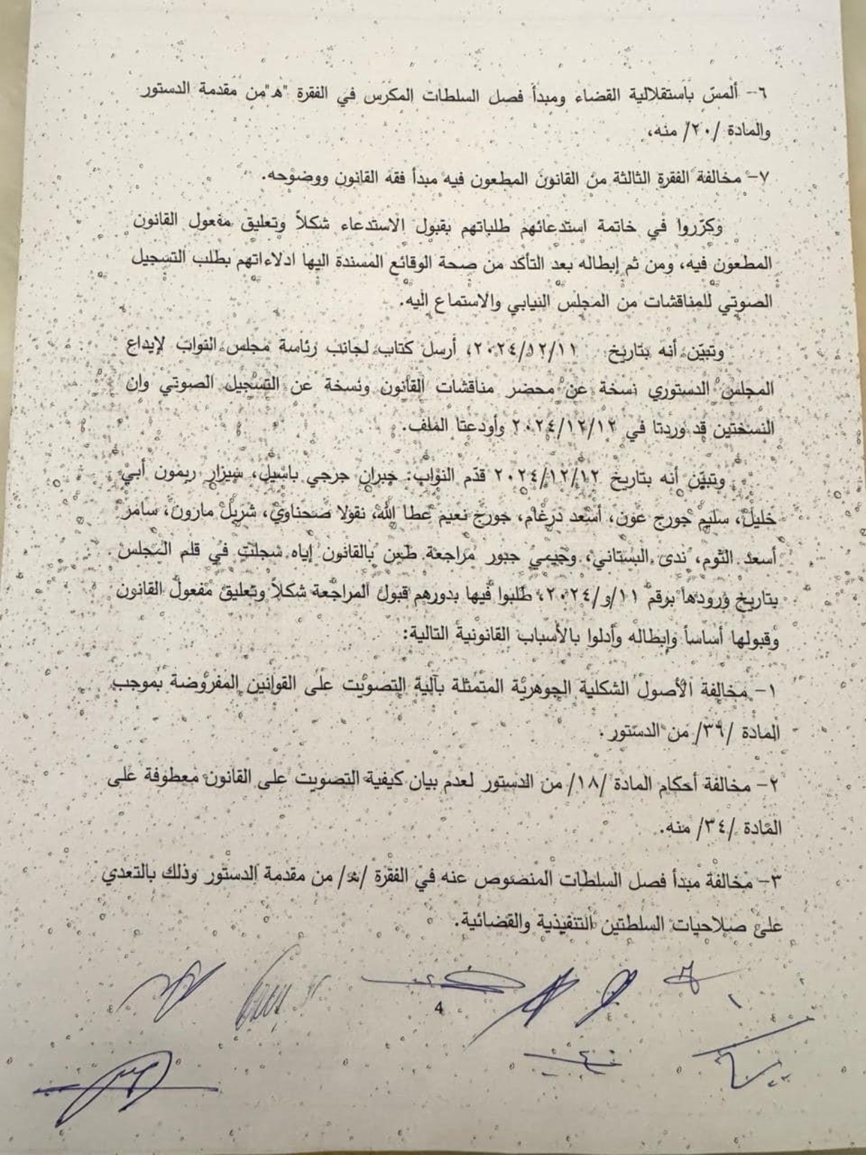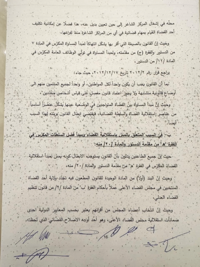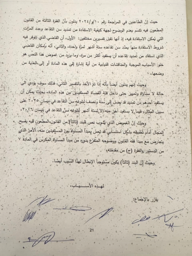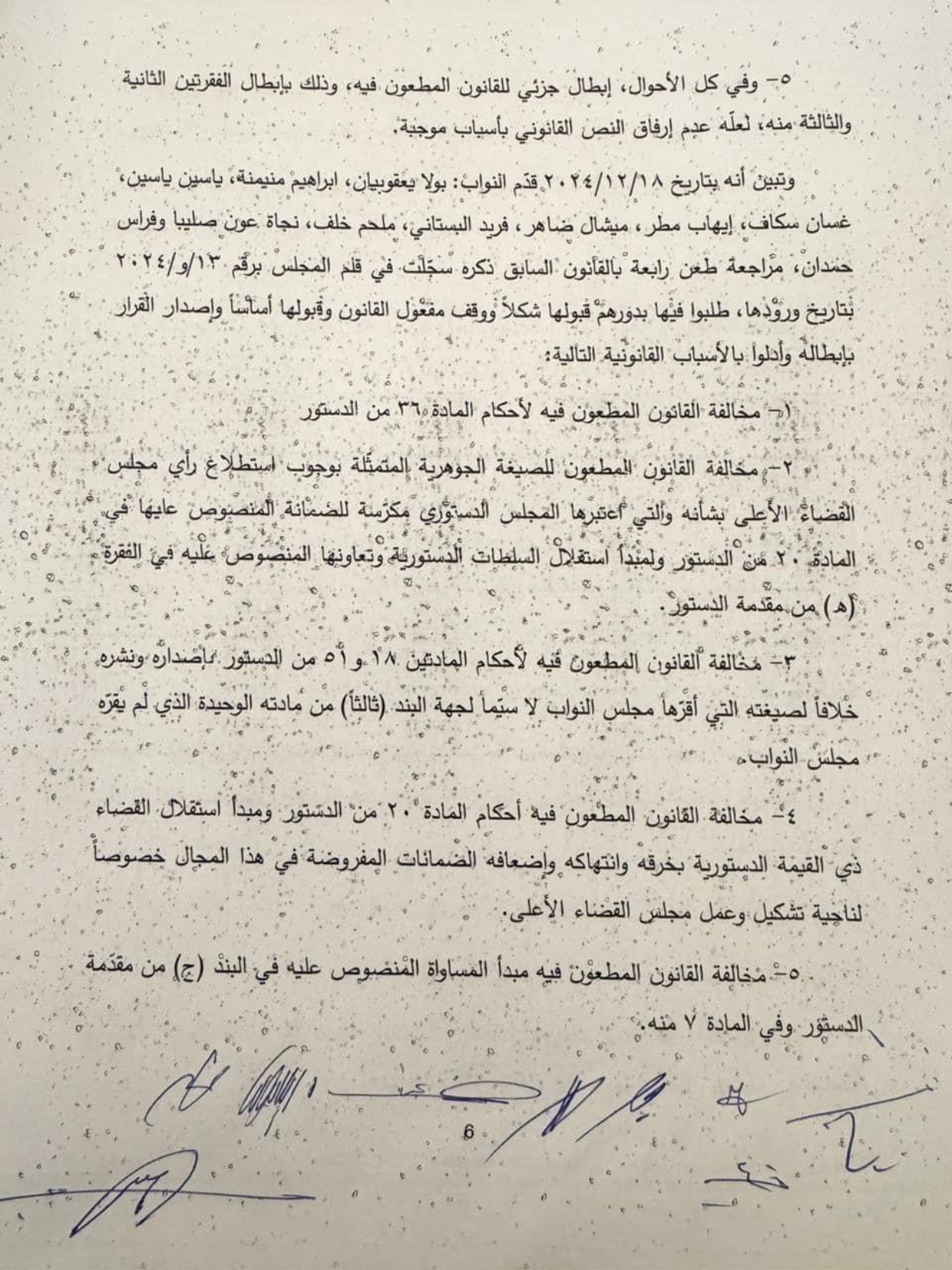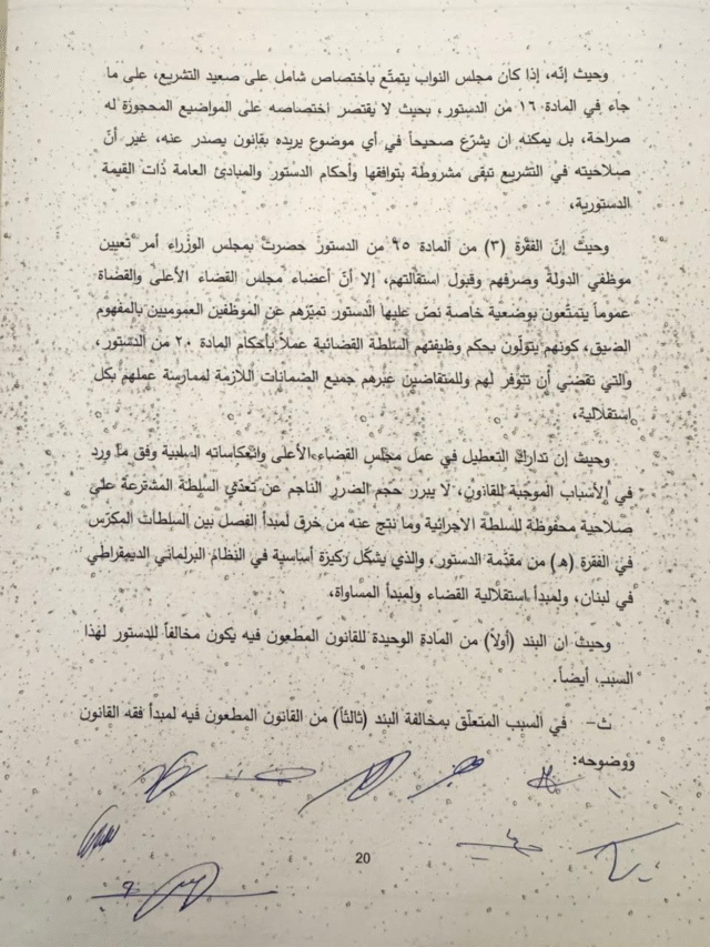 تجدون ادناه صور للقرار الذي صدر اليوم عن المجلس الدستوري بإجماع أعضائه وأبطل بموجبه القانون رقم ٣٢٧/ ٢٠٢٤ الذي عدّل المادة /٢/ من قانون القضاء العدلي