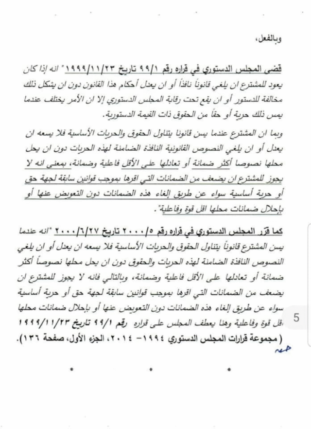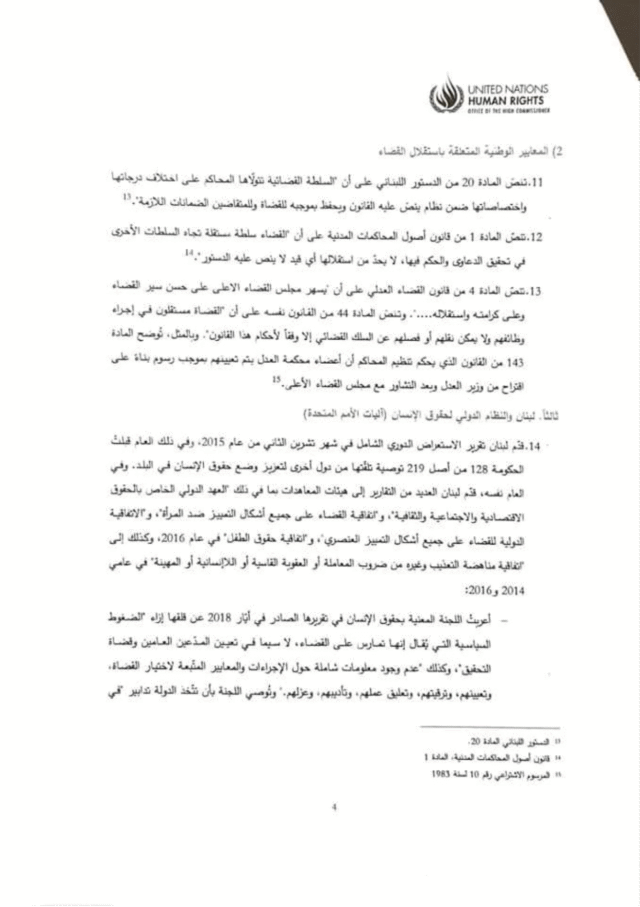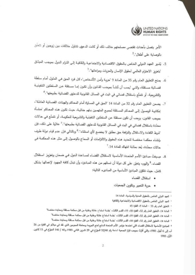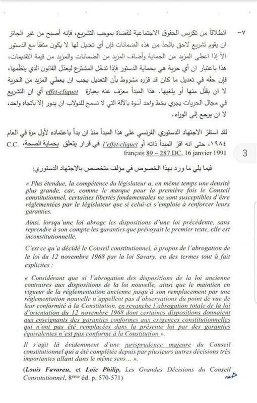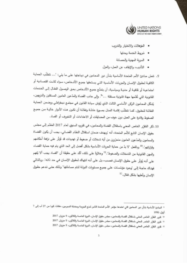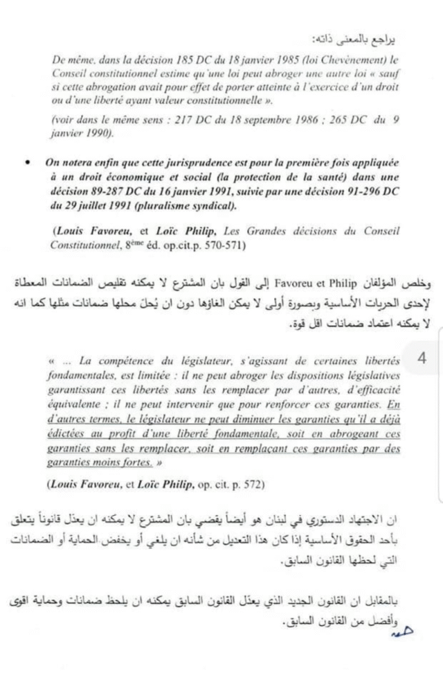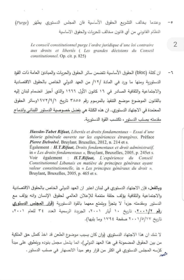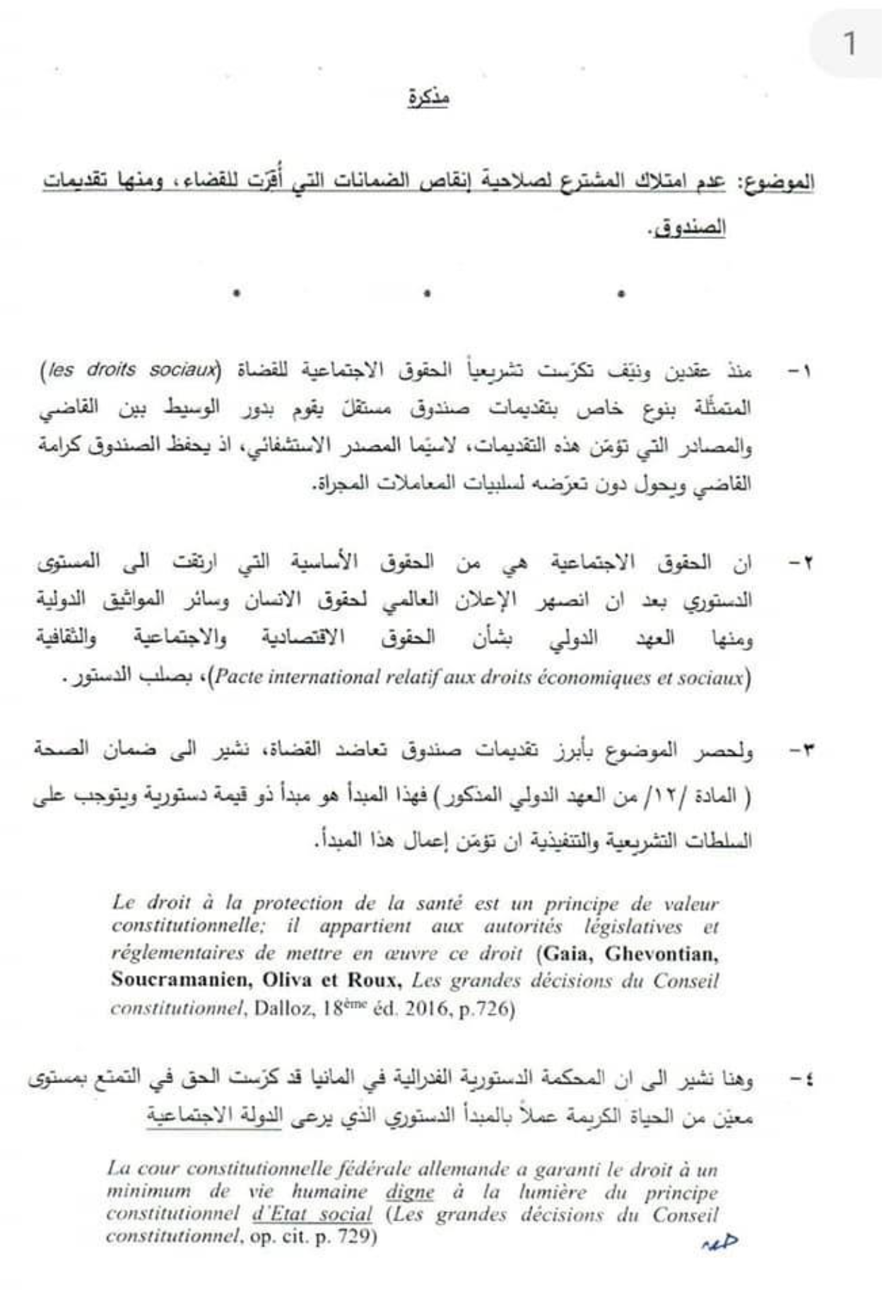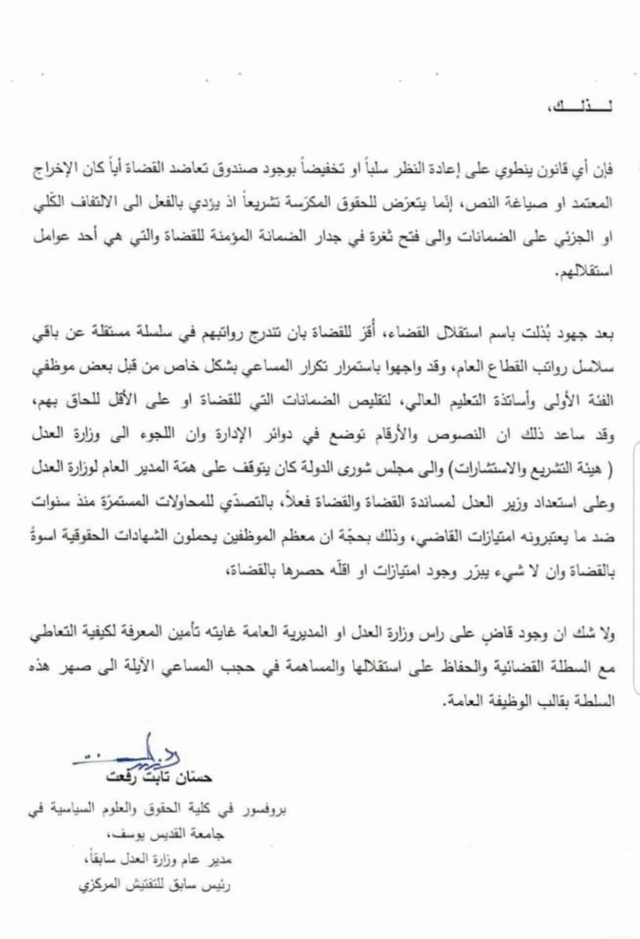 دراسة البروفسور حسان رفعت التي يؤكد فيها على عدم امتلاك المشرع صلاحية انقاص الضمانات التي أقرت للقضاء، ومنها تقديمات صندوق تعاضد القضاة