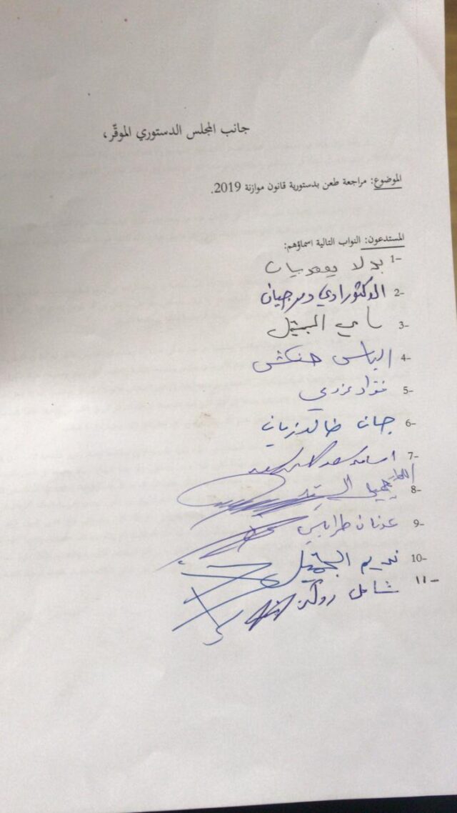 وقع أحد عشر نائباً الطعن، المقترح من قبل نادي قضاة لبنان، في قانون موازنة العام الحالي، بعد أن تم إدخال التعديلات التي ارتؤوها، وهو في جوهره يتعلق بعدم دستورية قانون الموازنة، خاصة لناحية تضمينه فرسان الموازنة، أي المواد التي لا يجوز أن تتضمنها أية موازنة، ومواداً انتقصت من حقوق السلطة القضائية بما يخالف ما نص عليه الدستور، فاسحين بذلك المجال للمجلس الدستوري الموقر، اعلى مرجع قانوني في الدولة، بأن ينطق بكلمة الحق رأفة بما بقي من دولة القانون،
